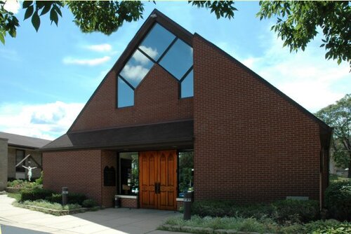 We are just east of Main Street on the south side of Maple Street, across from the old Helen Plum Library used to be and south of Lilacia Park. The Parish Hall and Church parking are located behind the Church sanctuary. There is a small one-way drive located on the east side that leads back to Church parking and the Parish Hall entrance. The exit drive is west of the Church rectory/office and exits back onto Maple.
